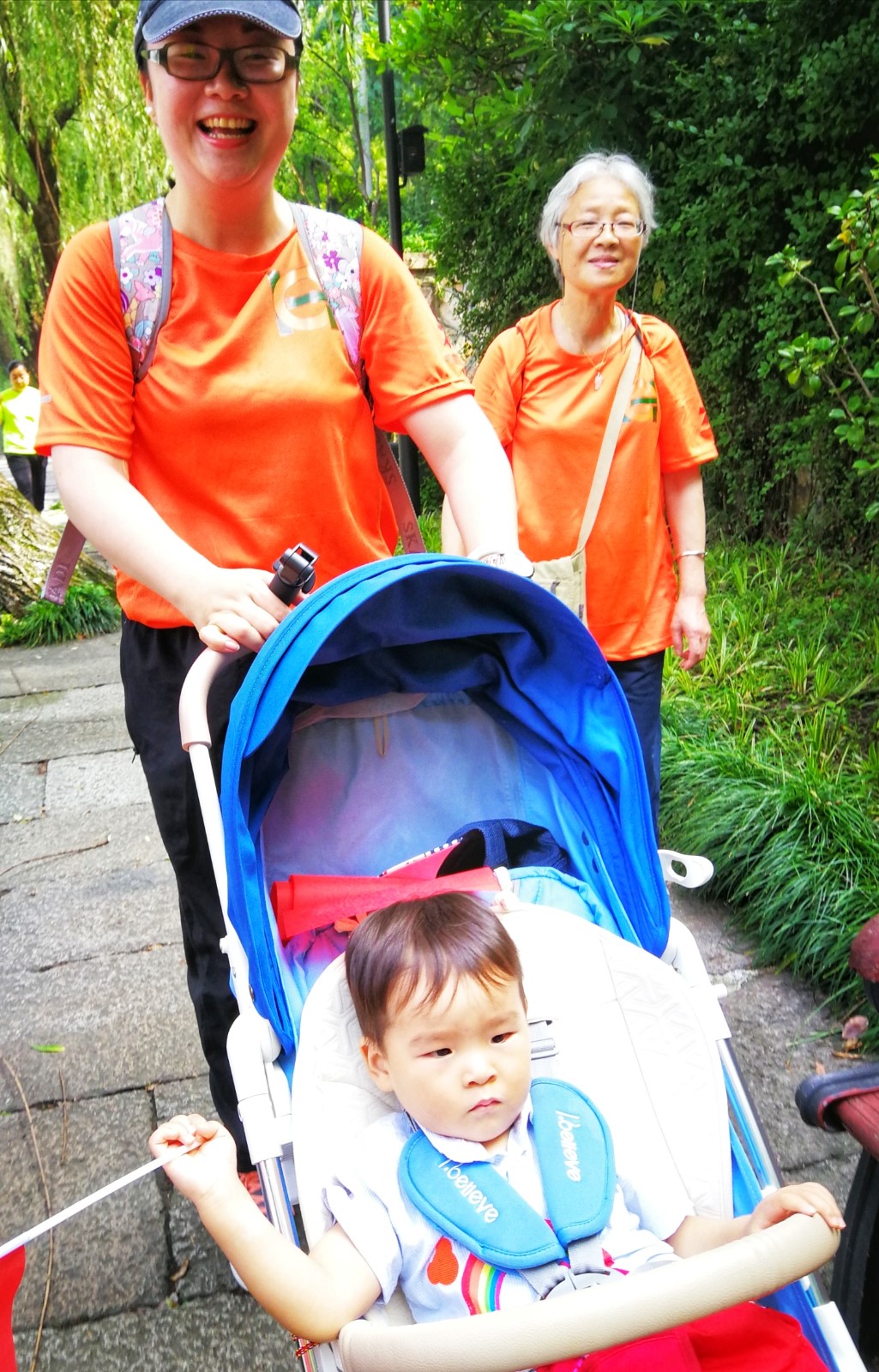 隊伍中,除了崗位同事同行、干部職工同行,還不乏三口之家同行。一路上大家歡聲笑語,其樂融融。